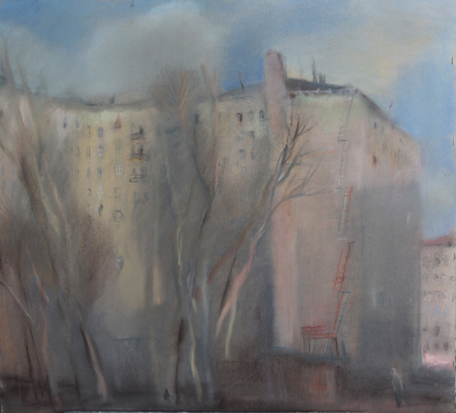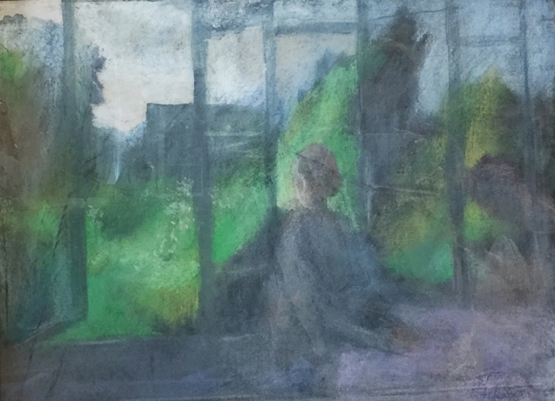 Дерево в окне. 2016. Картон, пастель, 70х50