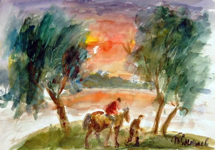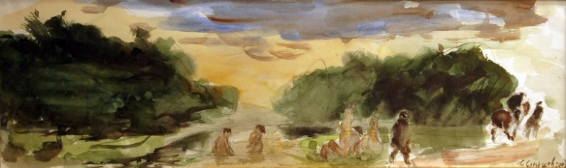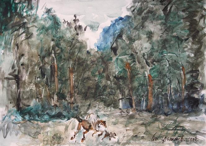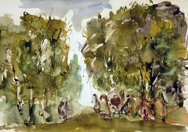 Прогулка. 2006г. Бумага, темпера, 55Х80