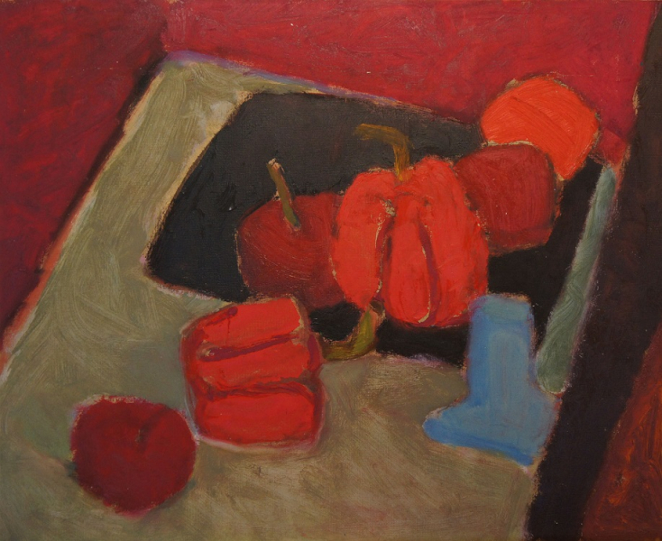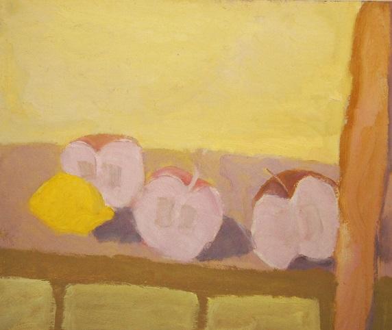Яблоки и книги. 2005. Картон, масло, 39х51