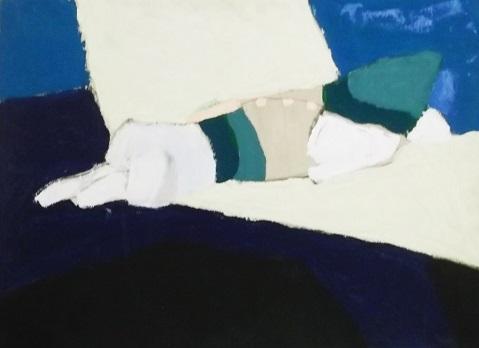 Из серии ОБЩЕСТВЕННЫЙ ТРАНСПОРТ. В поезде. Матрас 1. 2016. Бумага, акрил, 62х86