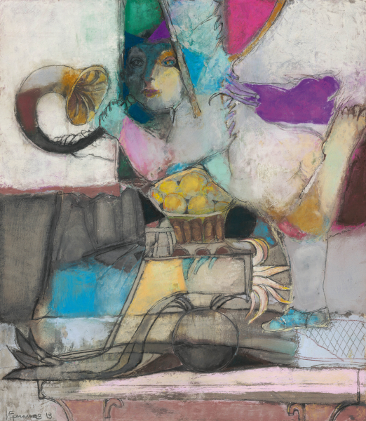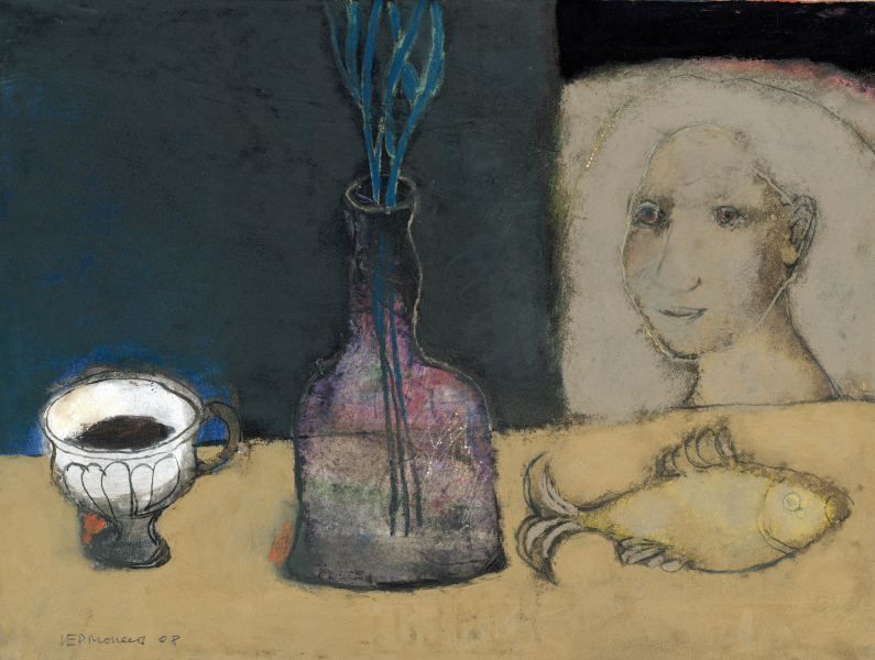 Чашка, бутылка, рыба, портрет. 2008. Б., пастель 29,5 х 39,5
