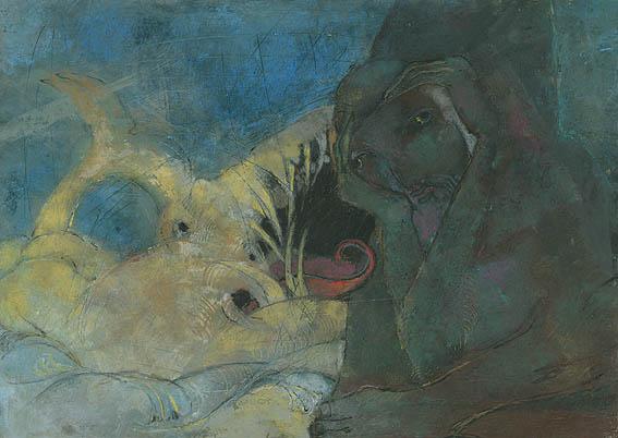Девушка и грубиян. 1994г. Бумага, темпера, 48Х63