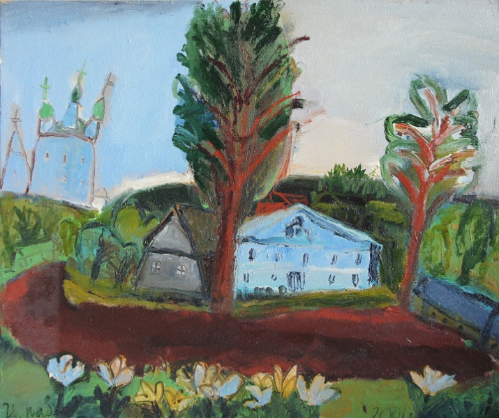 Пейзаж с синим домом. 2001. Холст, масло, 50х60 130000 р.