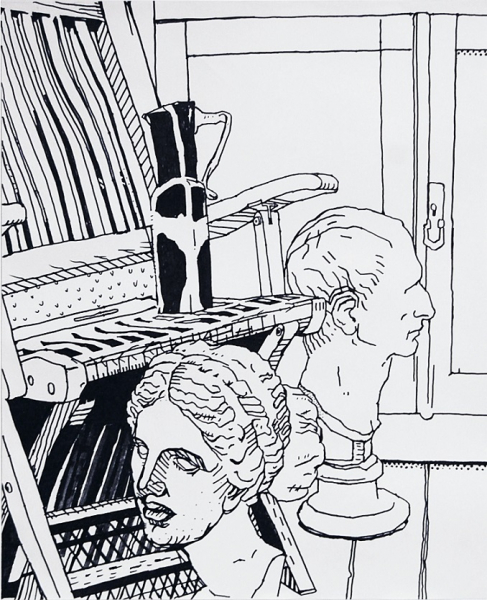 Натюрморт с гипсовой головой. 2015. Бумага, черный маркер, 137х105