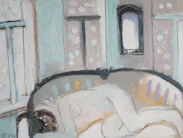 Из серии ОБЩЕСТВЕННЫЙ ТРАНСПОРТ. В поезде. Матрас 1. 2016. Бумага, акрил, 62х86