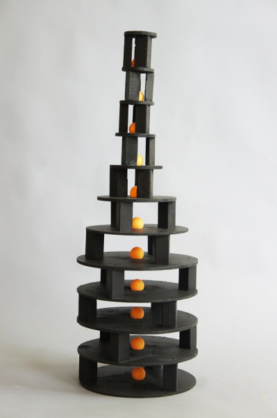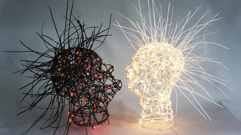 День и Ночь. 2016. Металл, пластик, электрика, 50х45х45