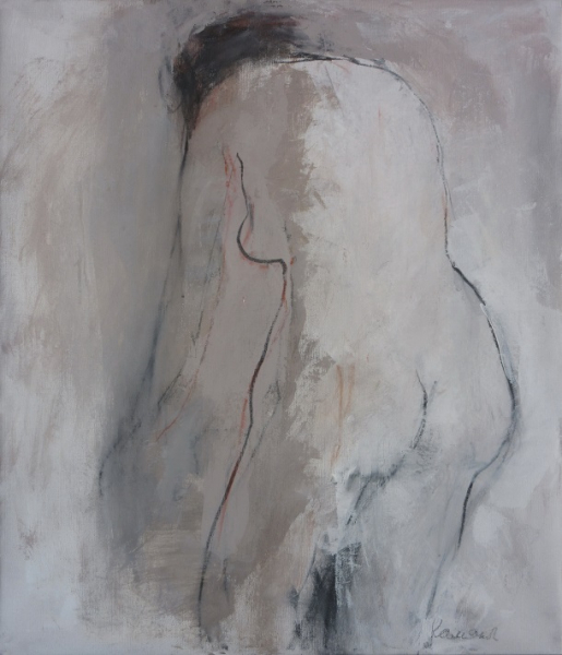 Из серии ОБЩЕСТЕВННЫЙ ТРАНСПОРТ. В метро. Ждёт. 2016. Бумага, акрил, 86х62