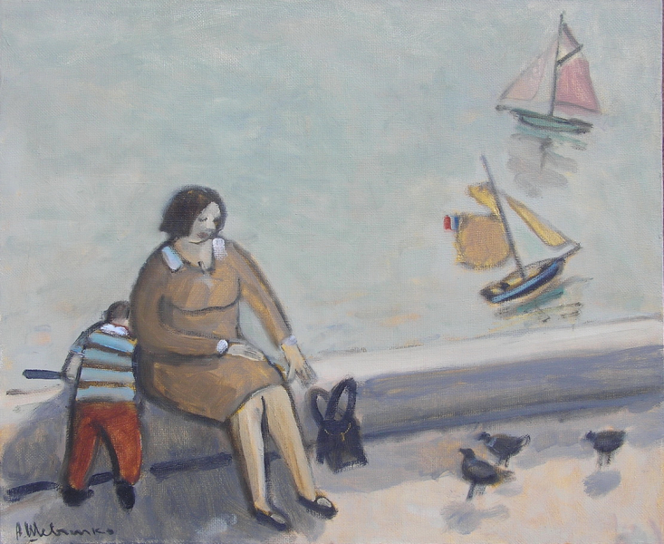 Прогулка. 2006г. Бумага, темпера, 55Х80