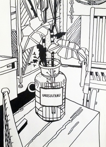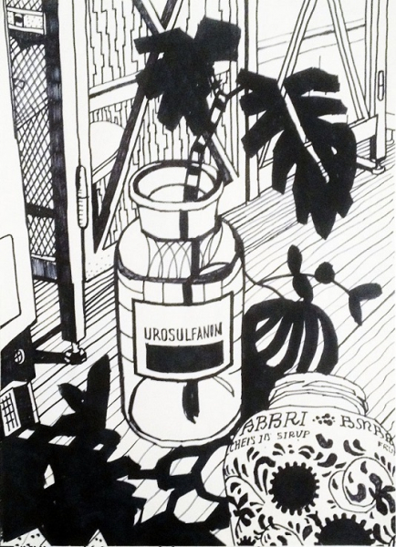 Натюрморт с аптечной банкой. 2015. Бумага, черный маркер, 65х47