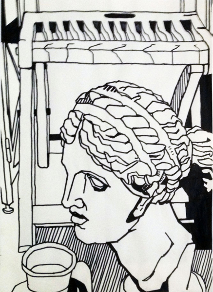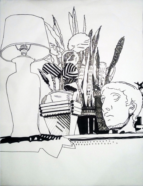 Натюрморт с гипсовой головой. 2015. Бумага, черный маркер, 137х105