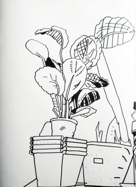 Натюрморт с растением. 2015. Бумага, черный маркер, 91х60