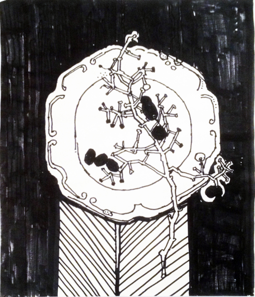 Натюрморт с тарелкой. 2015. Бумага, черный маркер, 46х50