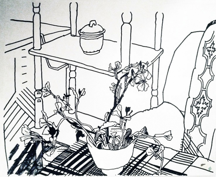 Натюрморт в углу. 2015. Бумага, черный маркер, 42х30