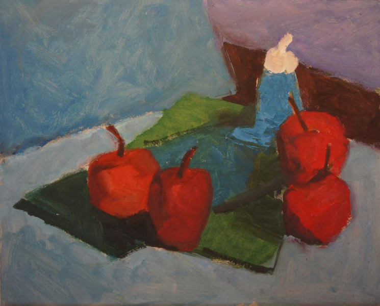 Яблоки и книги. 2005. Картон, масло, 39х51