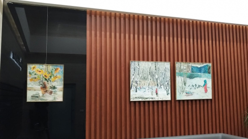 Зимние пейзажи и весенние цветочные мотивы. При поддержке Галереи EXPO-88 в холлах УК Pioneer-service / г.Москва, Лазоревый проезд д.5 к.1 и д.5 к.5 / метро Ботаничекий сад